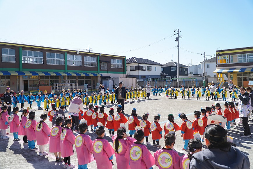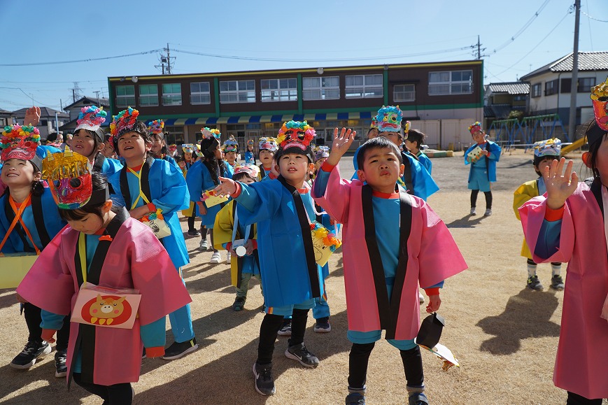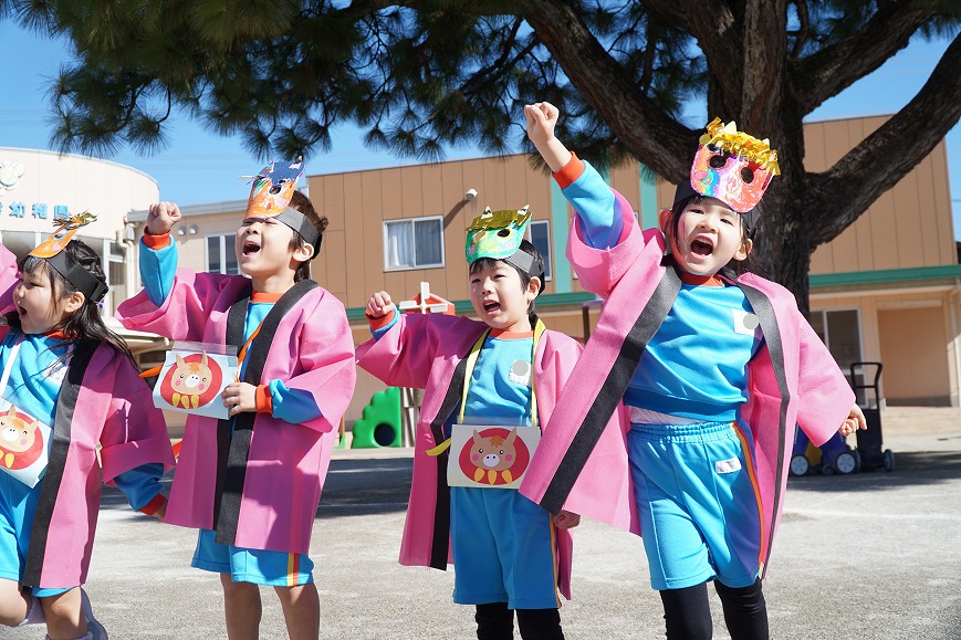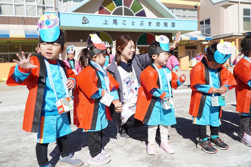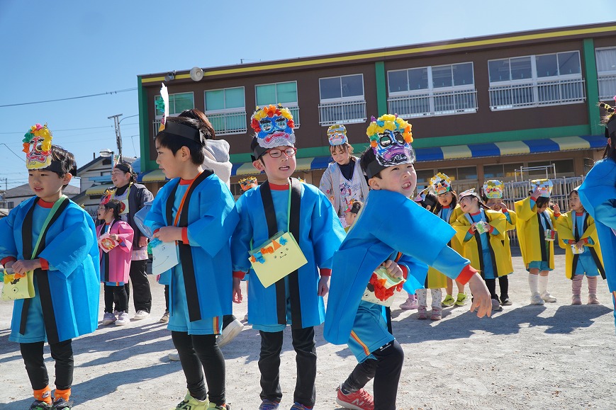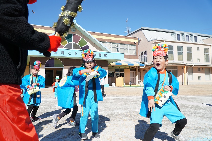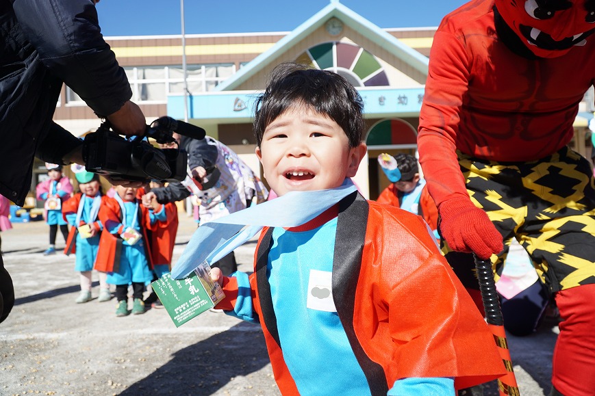 すると鬼が登場! 子どもたちも負けずに戦います!