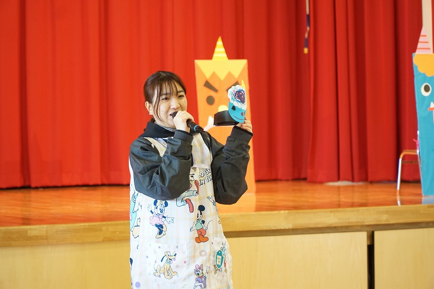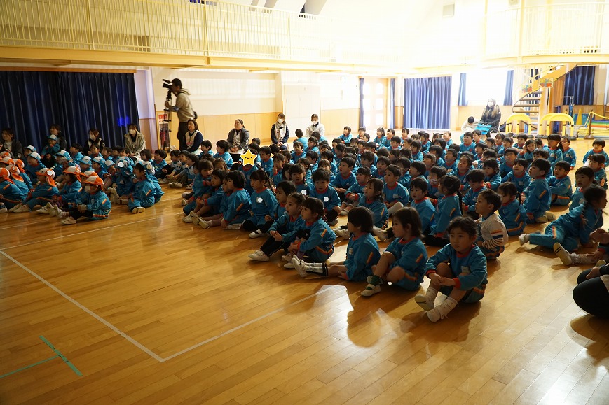 大ホールで『鬼のパンツ』の手あそびをしたり、 プロジェクターで紙芝居を観ました✨