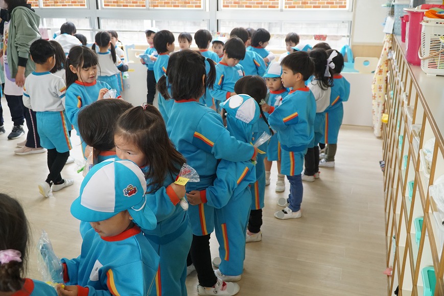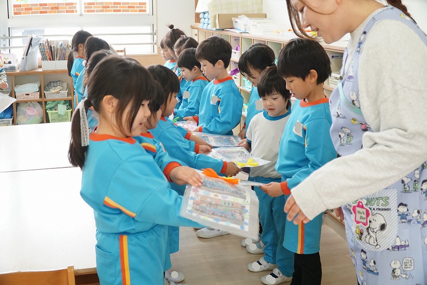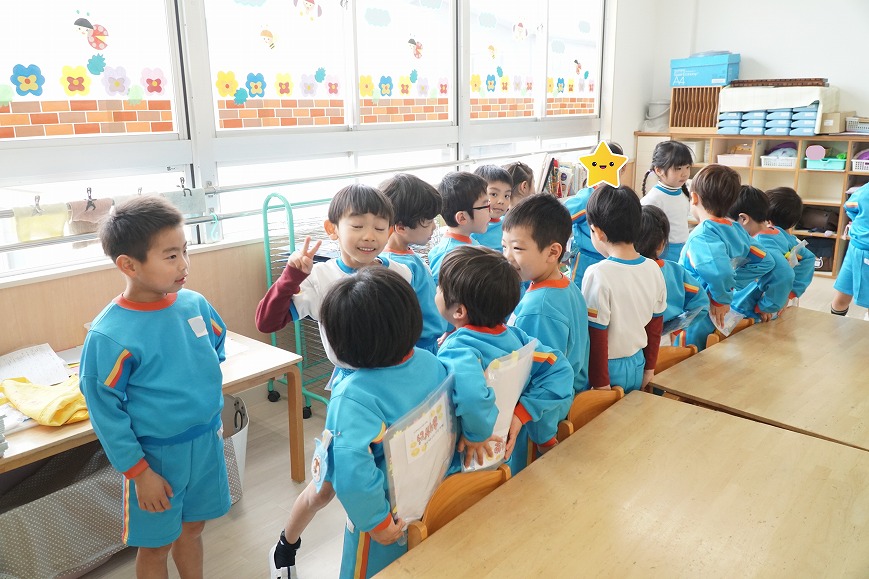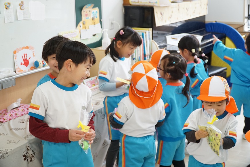 1年間の感謝の気持ちを込めて年長組からプレゼントを渡しました✨ また、年中・年少・ひまわり組・そら組からもいつも優しくしてくれてありがとうの気持ちを込めて 年長組にプレゼントを渡しました😊💕