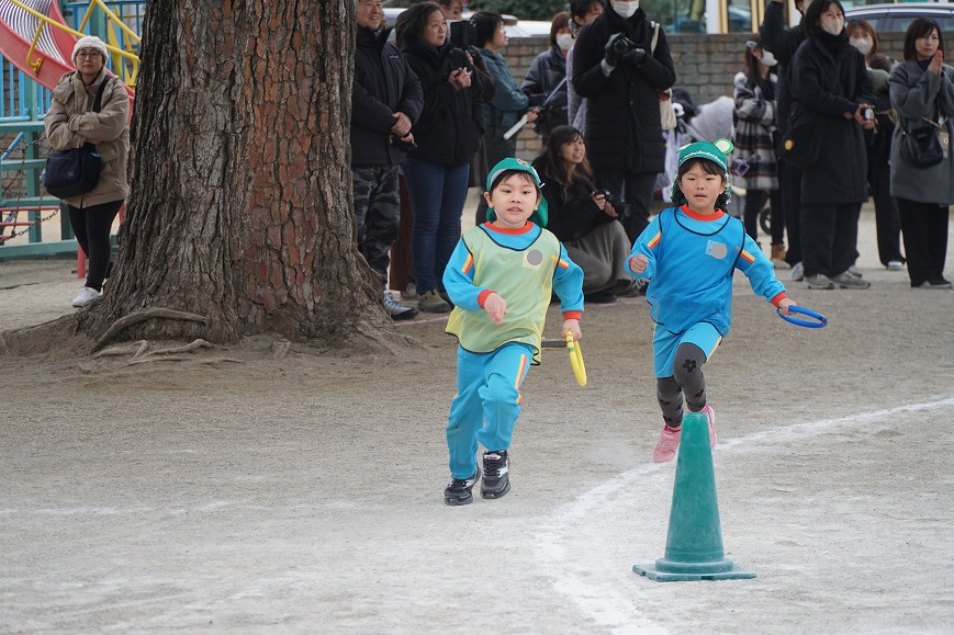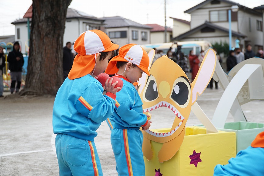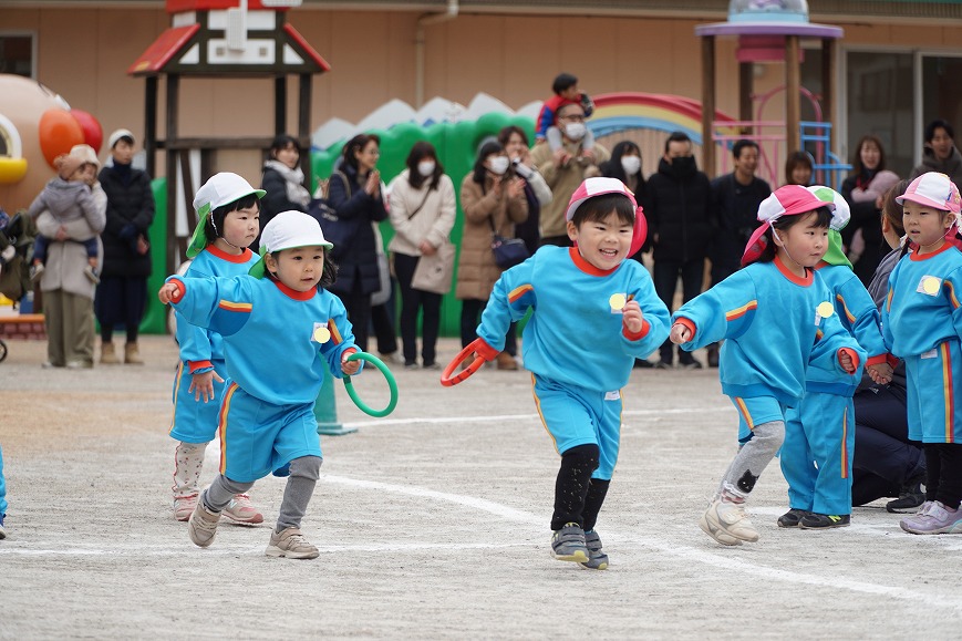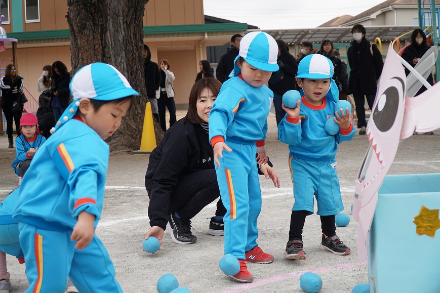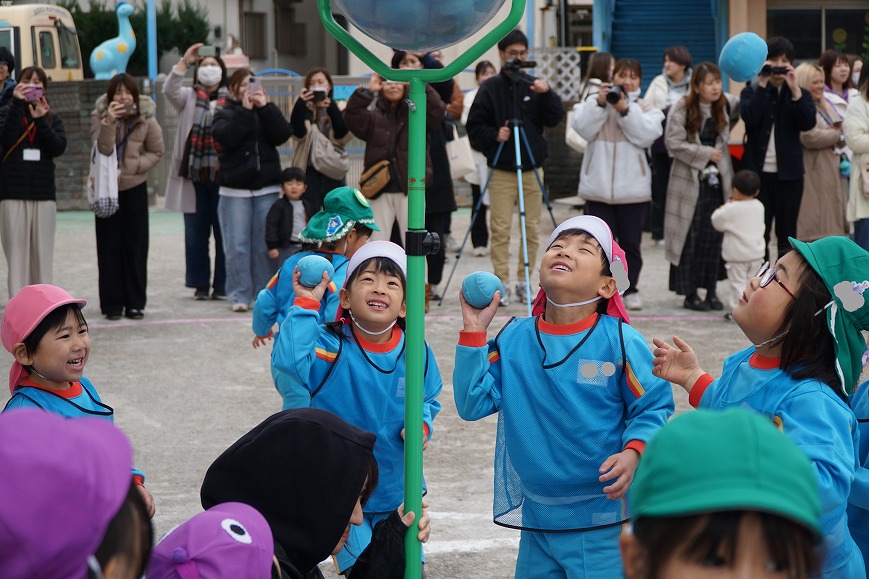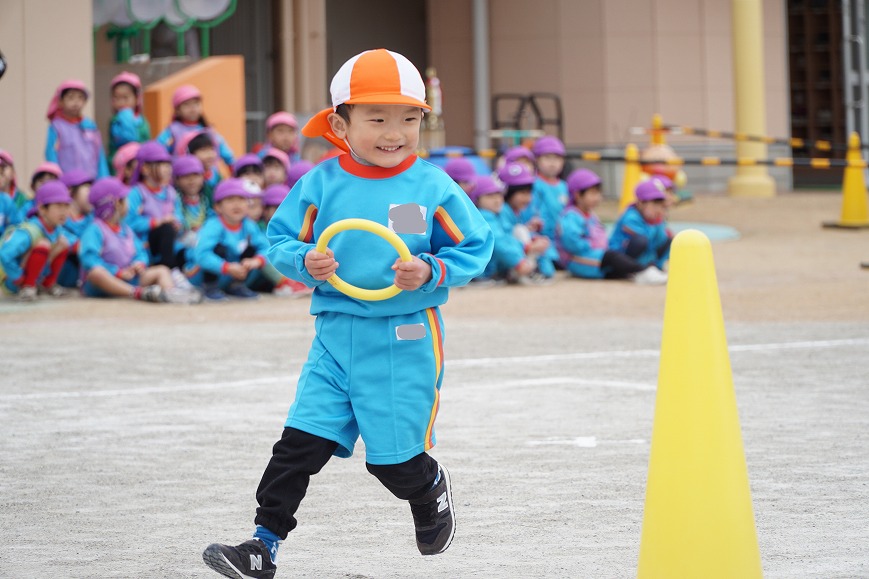 大玉送りや玉入れ、年中さん年長さんの合同で行われたリレーなど、