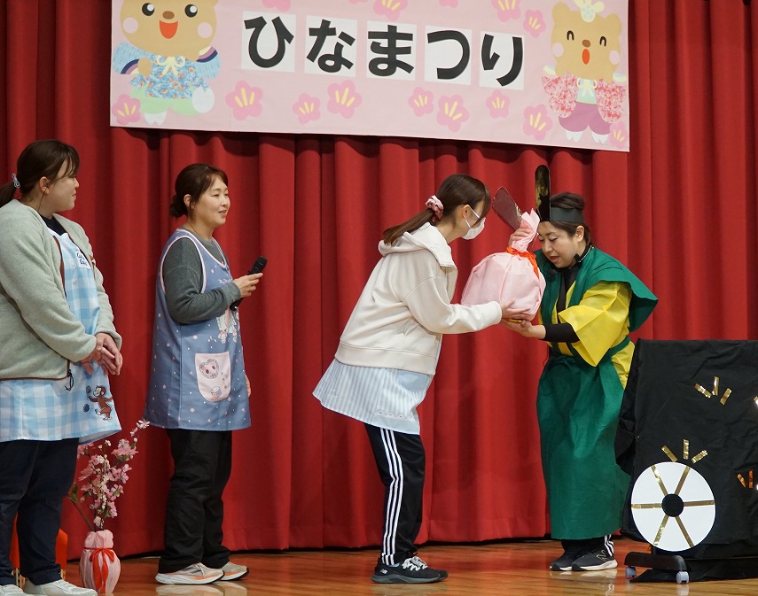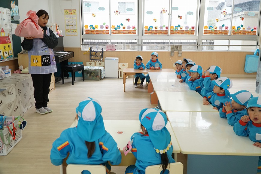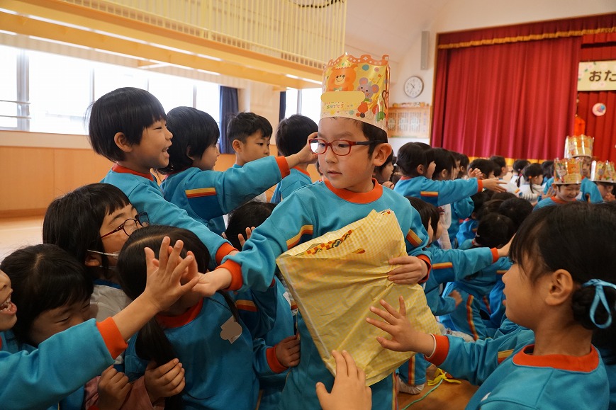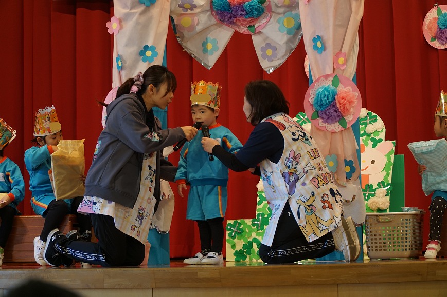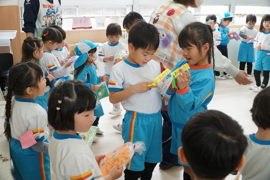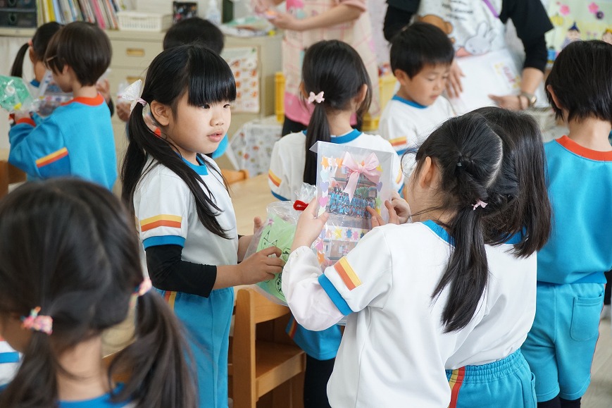 1年間の感謝の気持ちを込めて年長組からプレゼントを渡しました✨