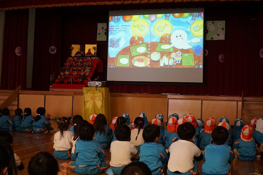 先生たちからのプレゼントは『ばけたくんのたんじょうび』を見ました🎉