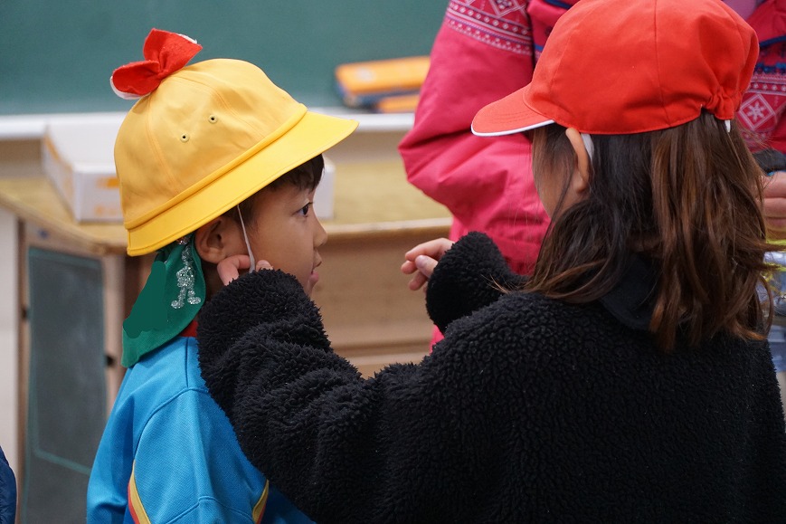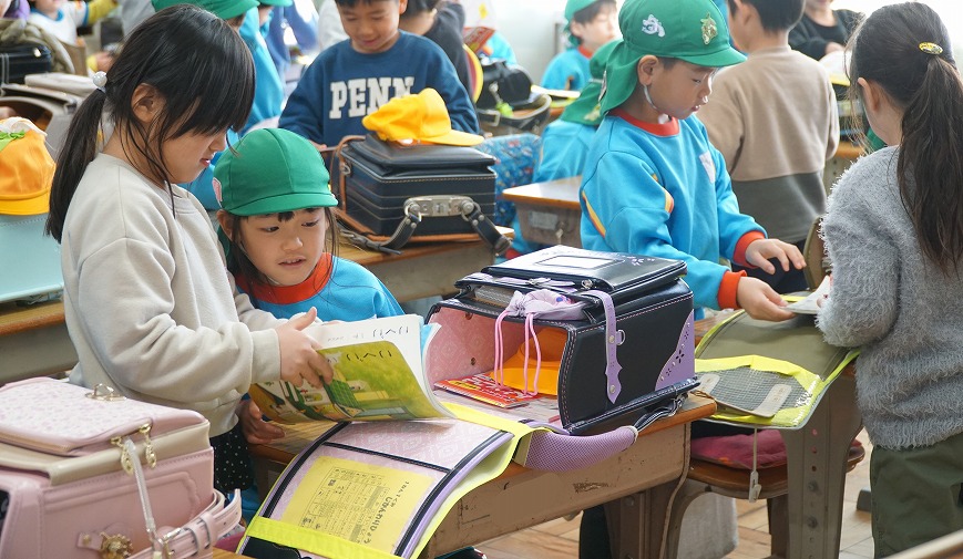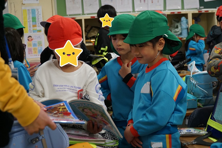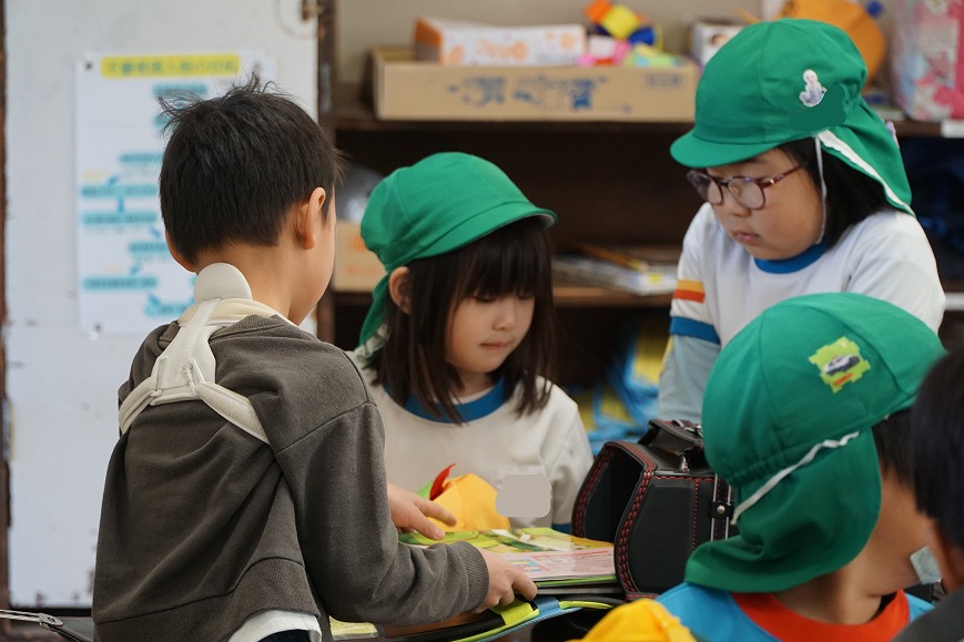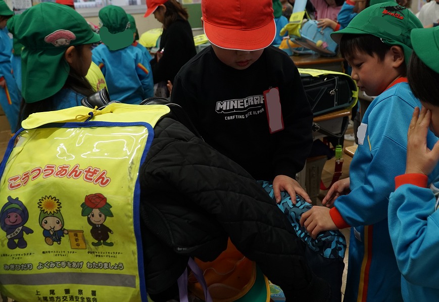 一緒に手遊びをしたり、教科書の入ったランドセルを背負わせてもらったり、