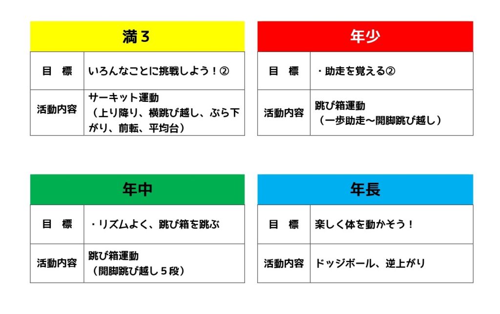 また、丈夫な体作りと運動を楽しむ心を自然と身に付けられるように