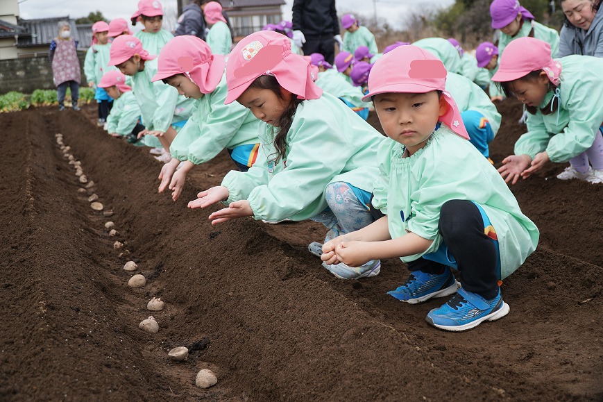 年中組さんがじゃがいもの苗を植えに行きました❗