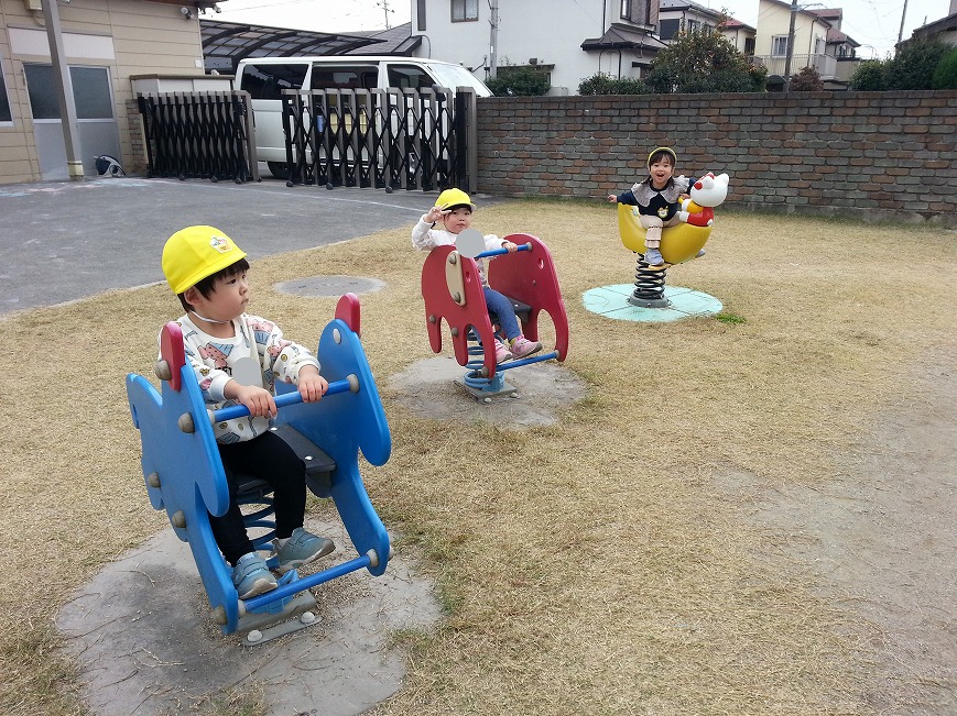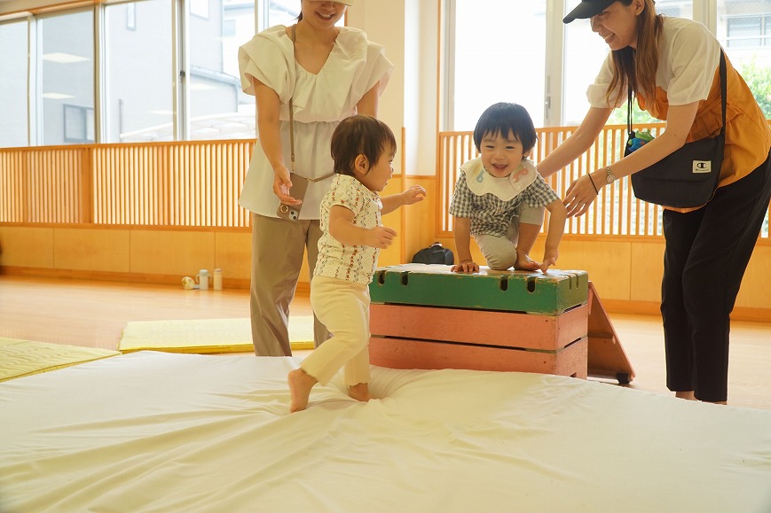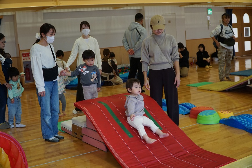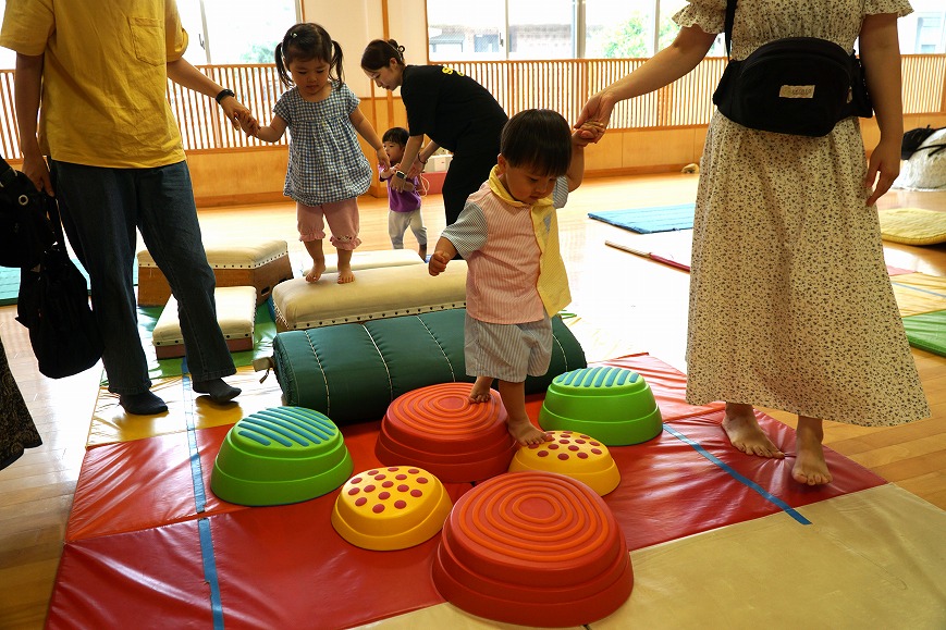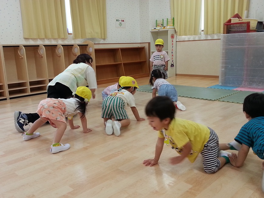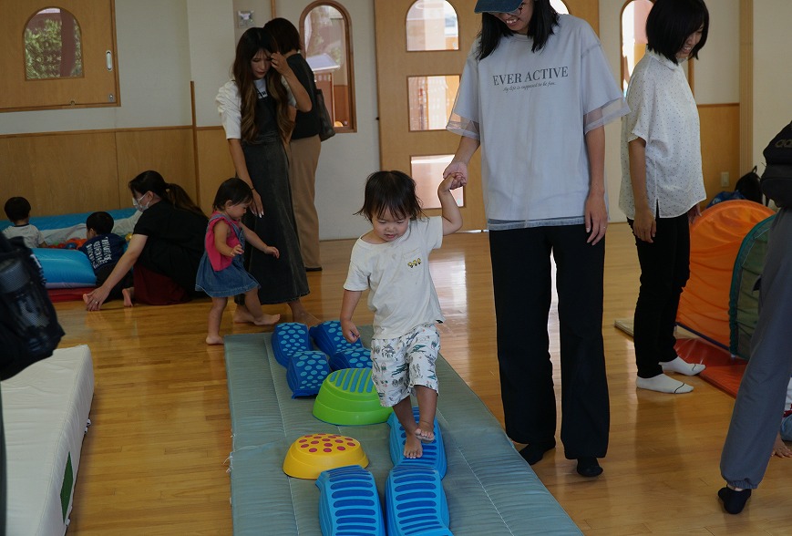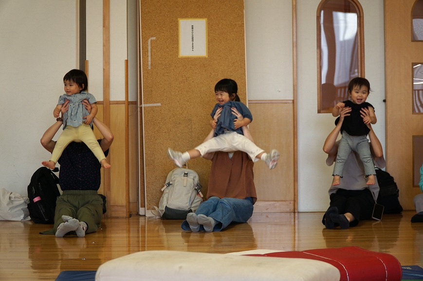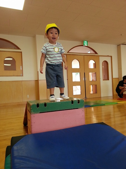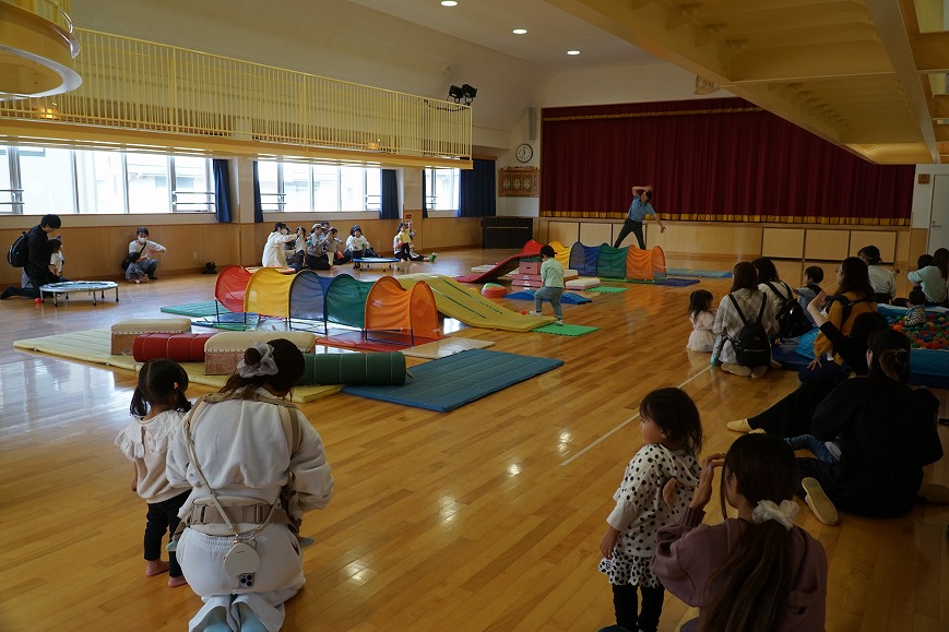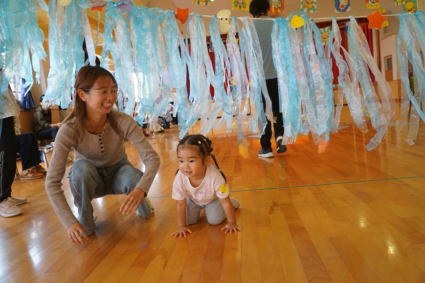 鉄棒でおさるさんのようにぶらさがったり、トンネルをくぐったりと、