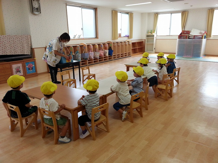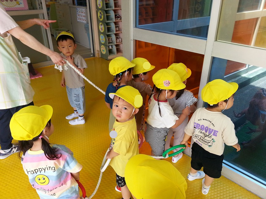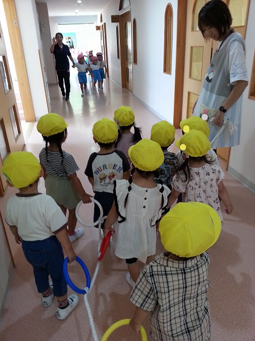先生のお話をしっかり聞いていざ園庭に出発~!