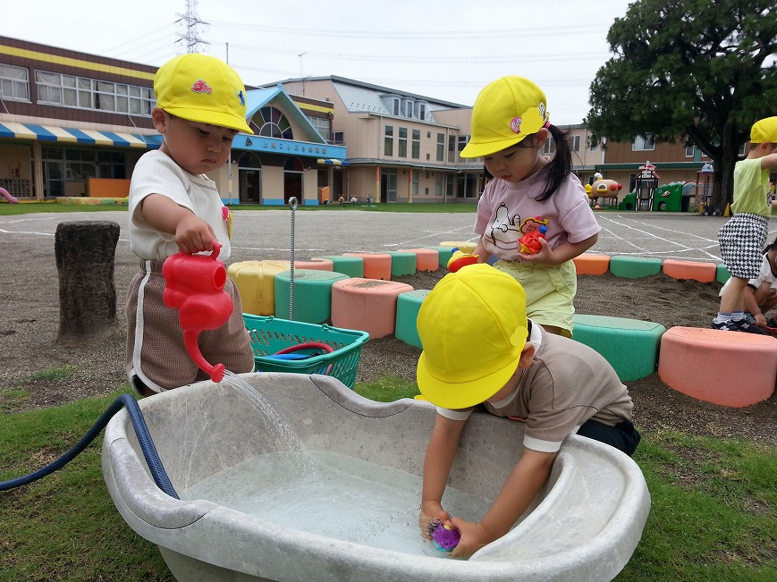 園内めぐり、砂場あそび、水あそびをして遊びました😎