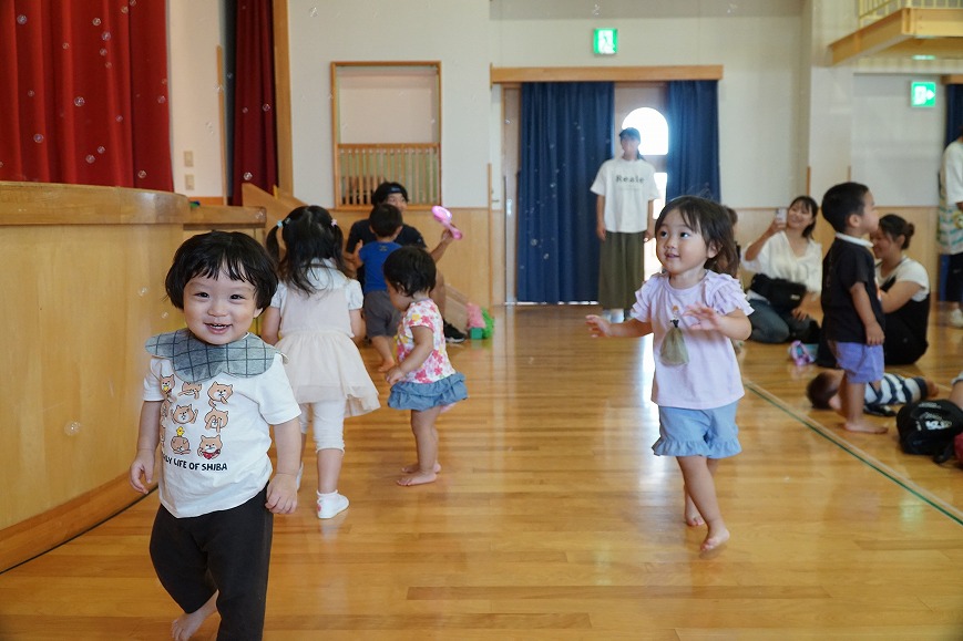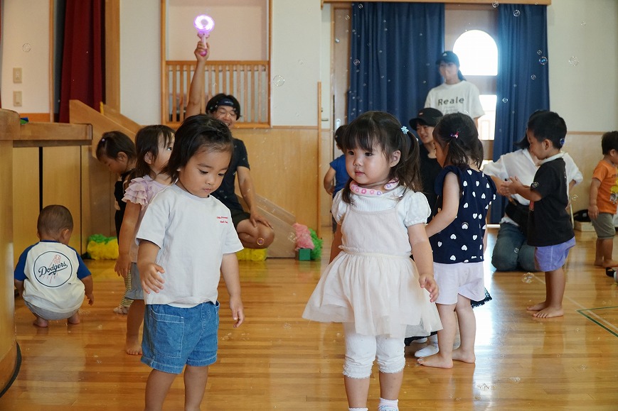 たくさんのシャボン玉に囲まれて、目をキラキラさせて子どもたちも参加してくれました🤭