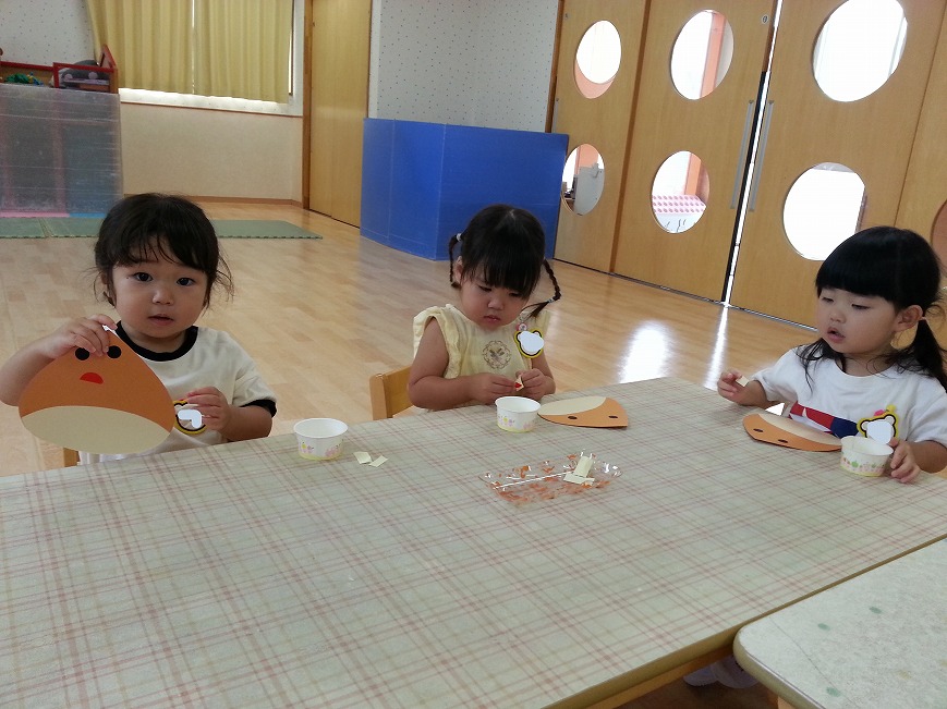 目と口のシールを貼って、かわいいくり🌰も作りました✨✨