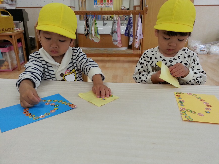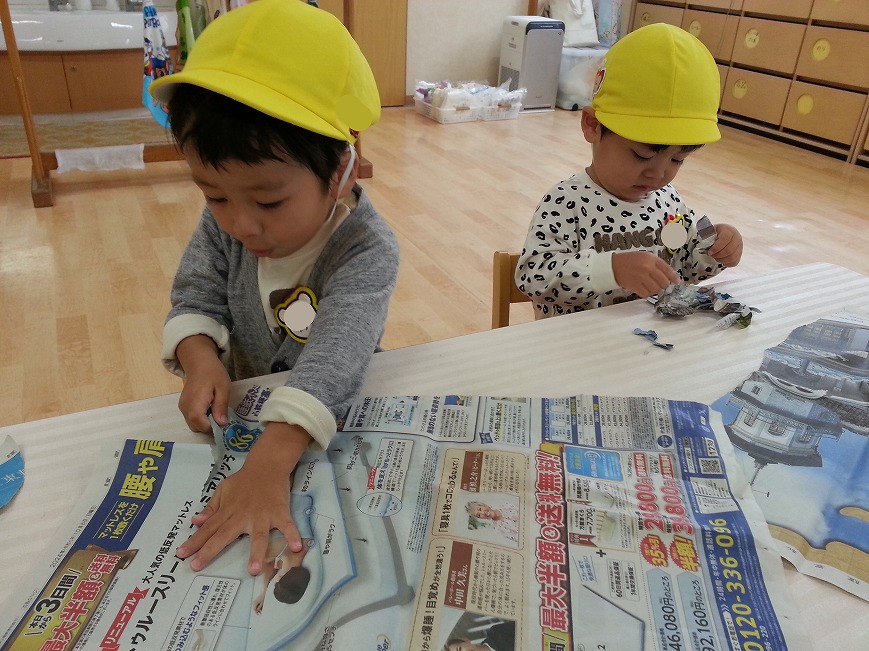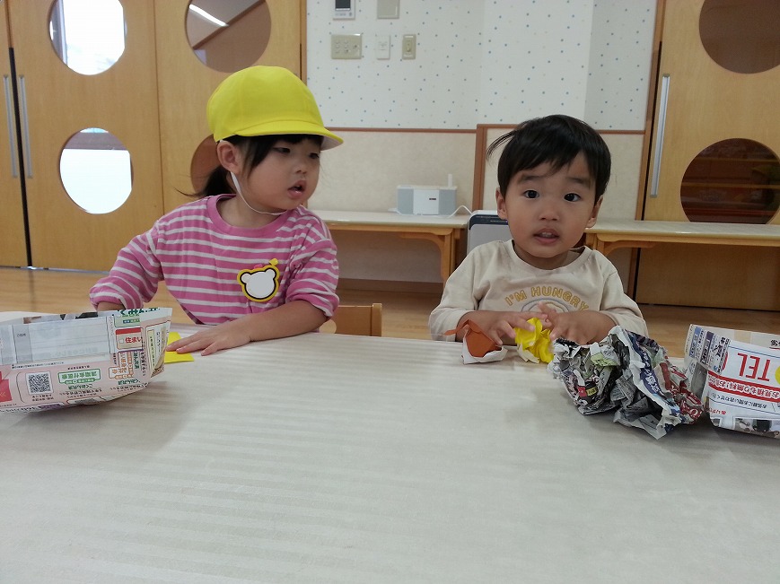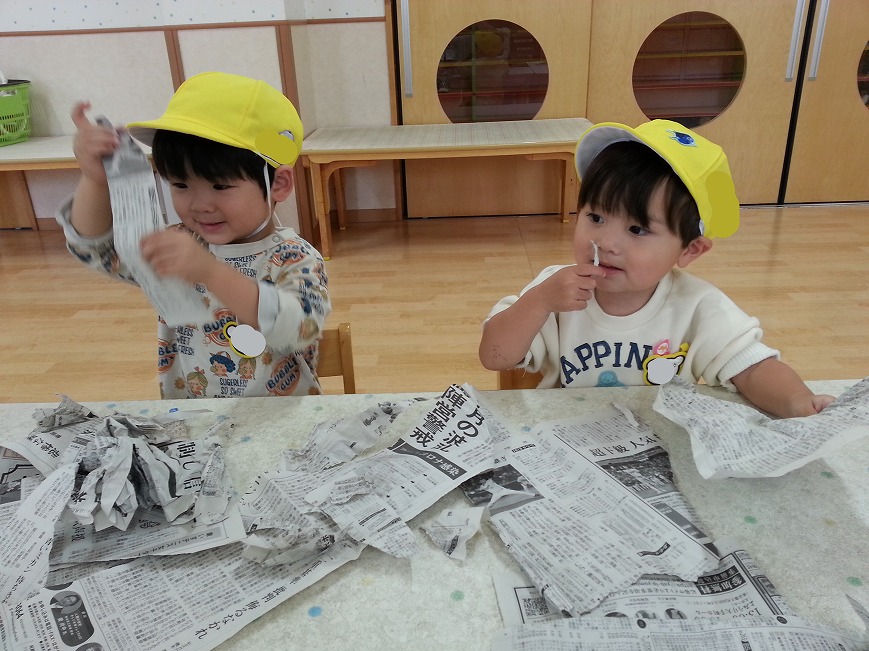 新聞紙あそびや、やきいも製作、シールあそびにクレヨンあそびなどもしました💕