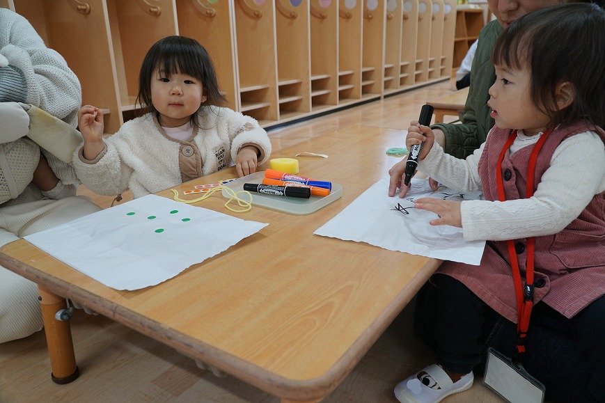 満3歳児クラスのひまわり組、そら組さんと一緒に、